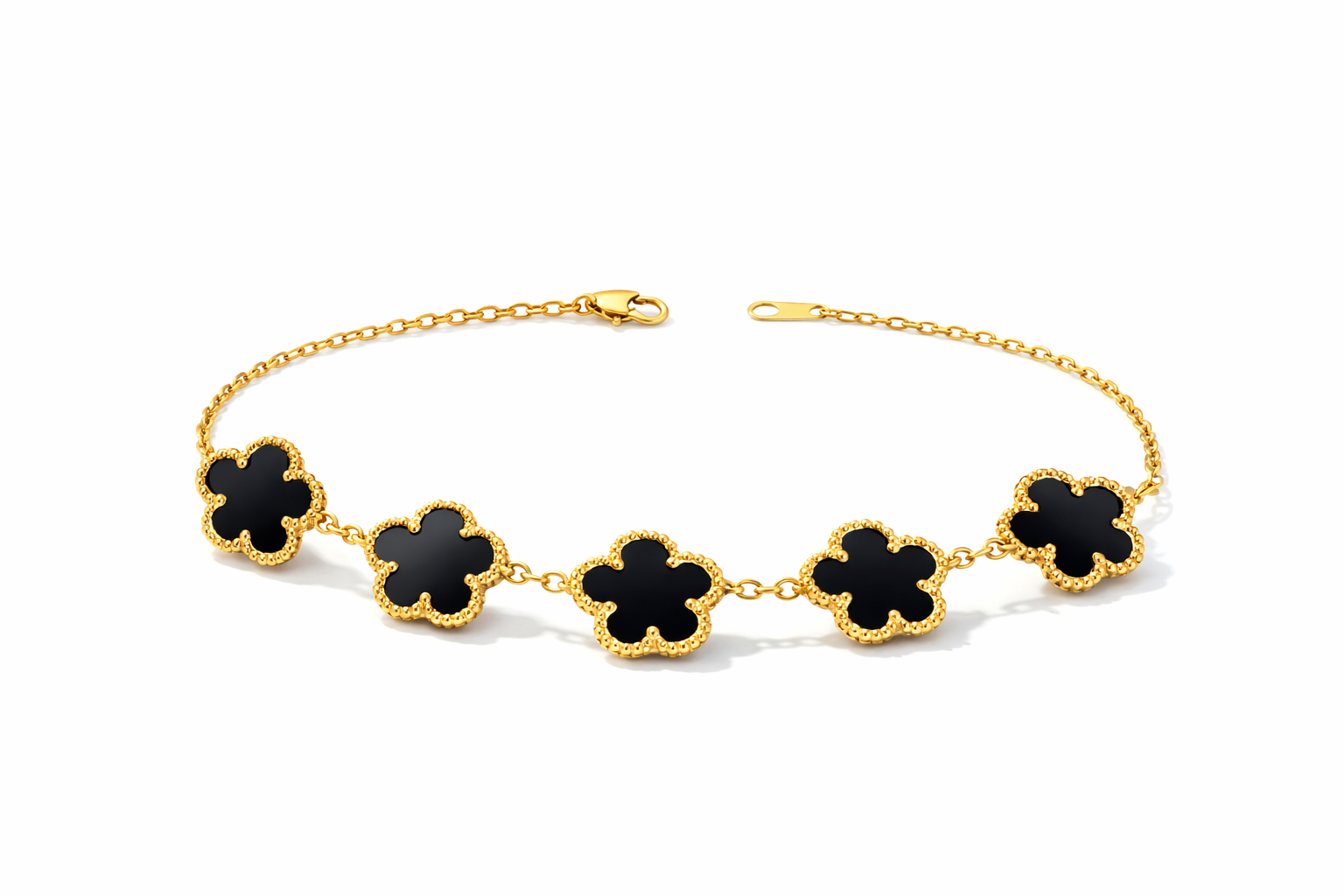 Deep black enamel paired with 18K gold plating gives unforgettable contrast & class.